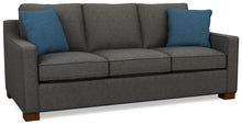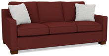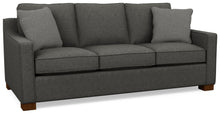 The Montreal Sofa offers a clean line, contemporary style. It features padded back pillows, box style seat cushions, sloping track arms and block feet in espresso finish. The Montreal Sofa is also available in a Queen Sofa Bed for visitors.