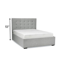The Snowdrift Storage Bed features button-cushioned upholstery in Muse Grey with hidden storage for all those extra blankets!